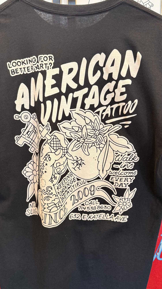 Located in Orange, California, American Vintage Tattoo serves all of Orange County with many different styles of tattoos, and several talented tattoo artists. Whether you're looking for American traditional tattoos, styled realism, portrait tattoos, Japanese tattoos, fine line, or lettering, at American Vintage Tattoo, we have an artist for you. Book a tattoo appointment with one of our tattoo artists today.